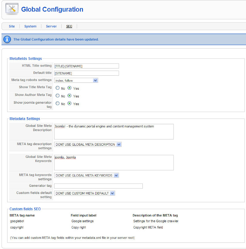 ส่วนเมนู SEO ที่เพิ่มขึ้นมาใน Global Configuration